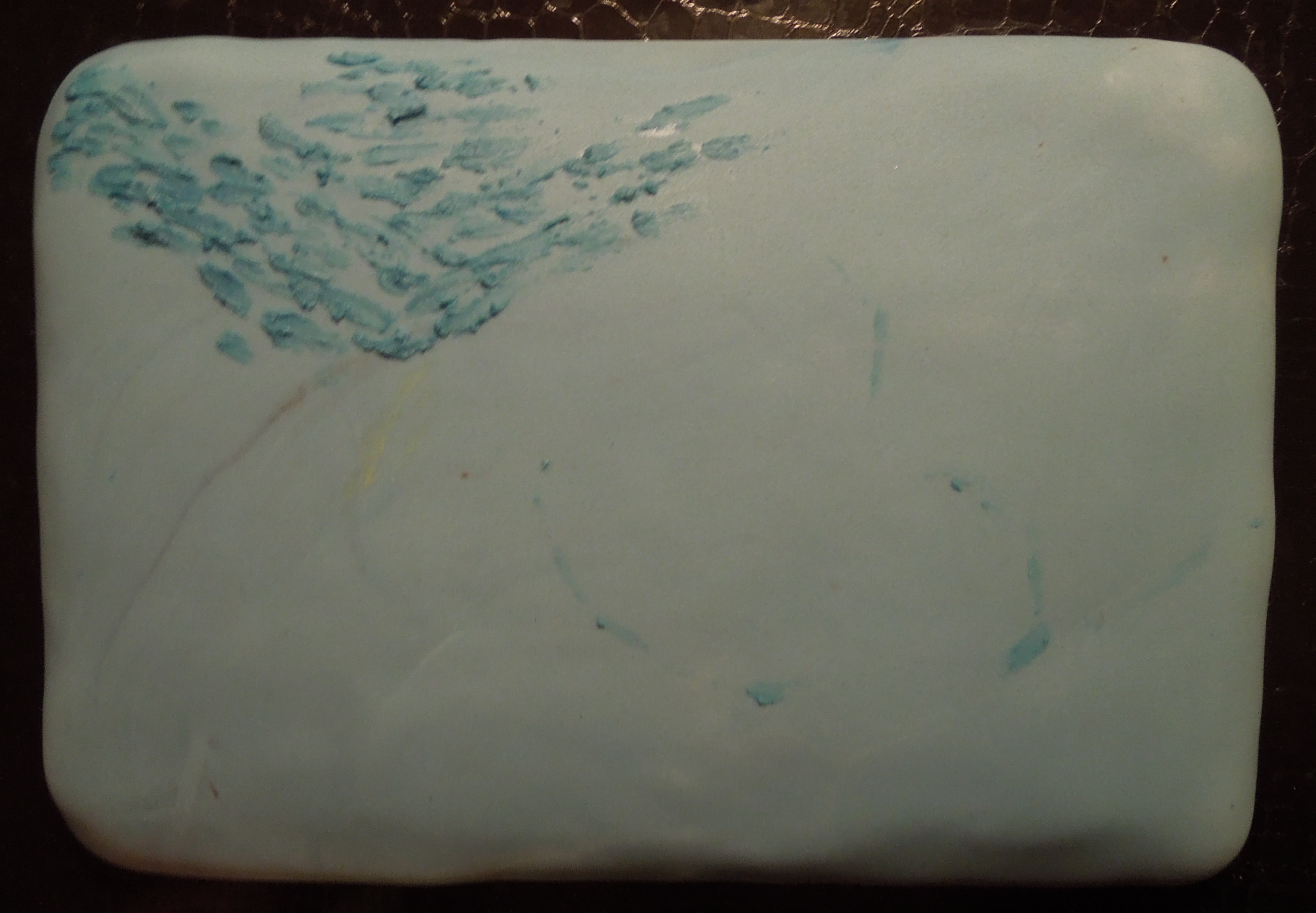 Though unusual to first cover the cake in fondant, and THEN buttercream, I wanted to have a smooth surface to “paint” on. So: on went blue buttercream, and then fondant. Man, that is a lumpy fondant job- I really stink at covering with fondant. I have watched just about every youtube help video out there, and I still have a hard time. Luckily in this case, the frosting totally covered up the lumpiness- but still. A skill to practice. :/