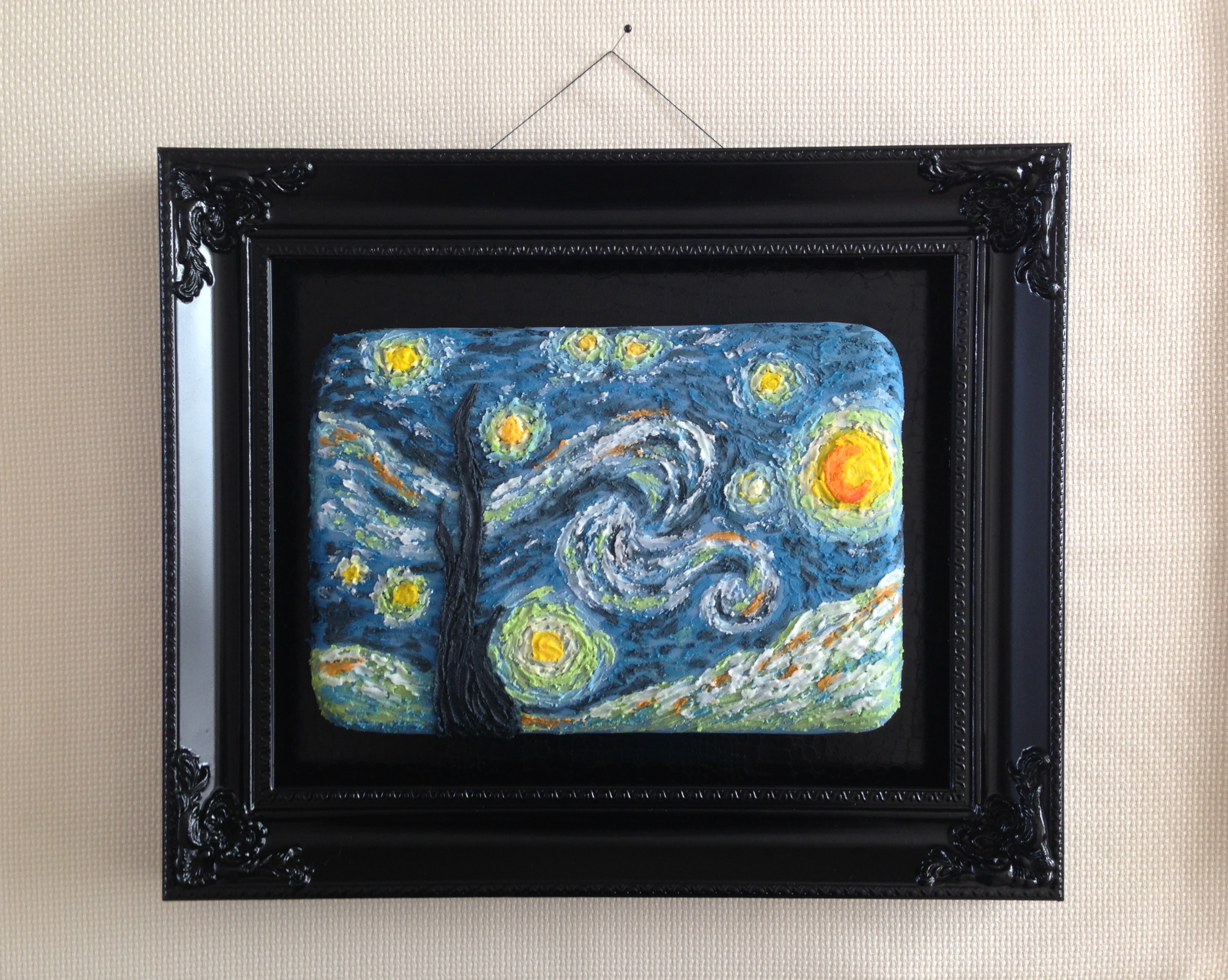 duff cake mix van gogh cake close up of van gogh cakeI had a lot of fun working on this cake. If you could recreate one work of art using a different medium, which would you choose?