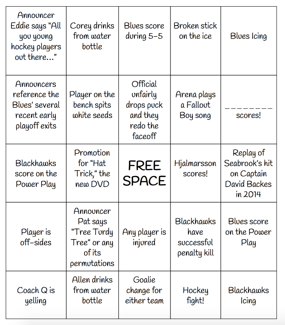 hockey bingo card November 26, 2015 Share this: Share on Facebook (Opens in new window) Facebook Share on X (Opens in new window) X Share on Pinterest (Opens in new window) Pinterest Like Loading...