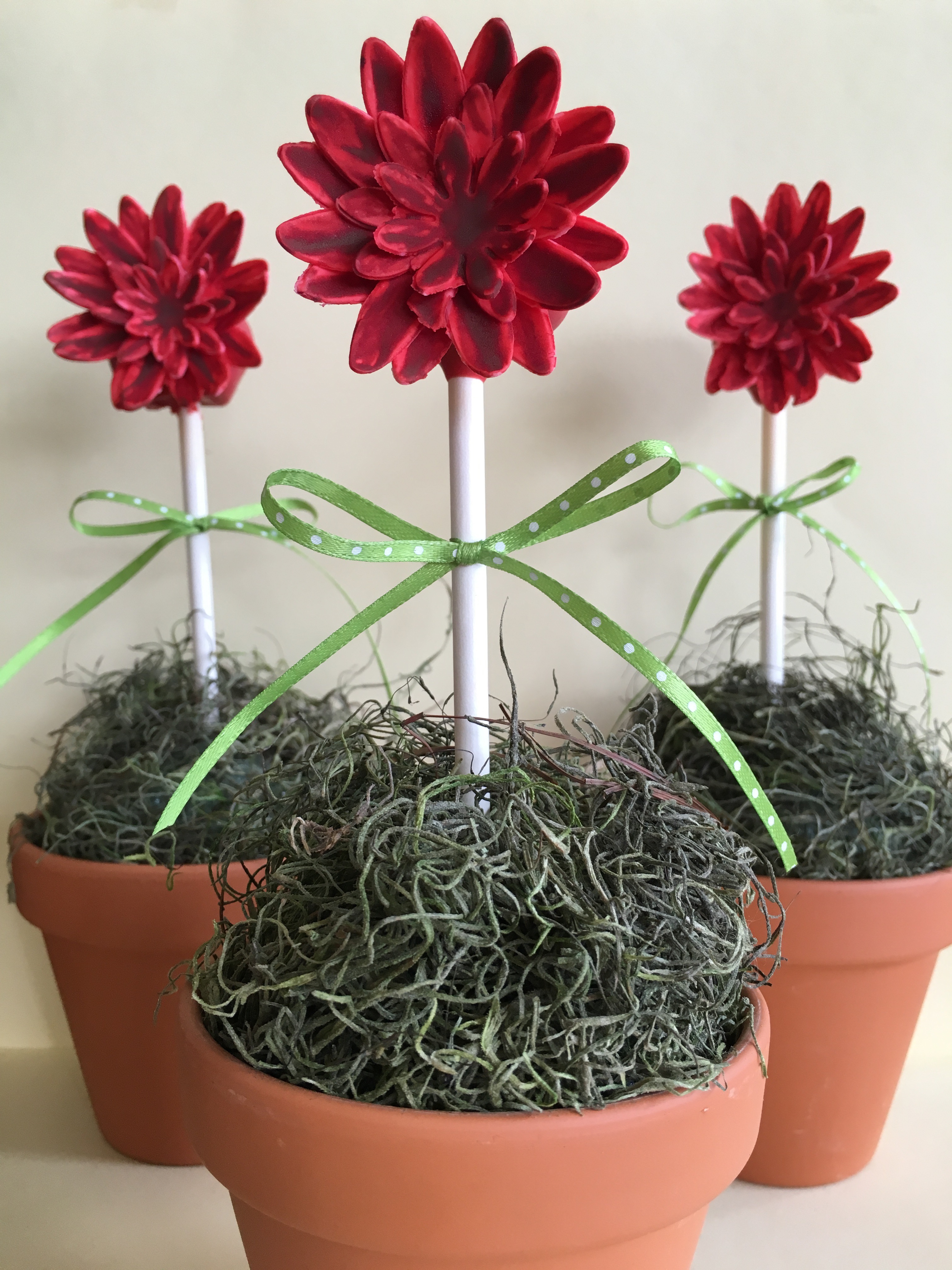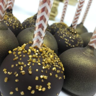 These cake pops are packaged in a special tin, vase, or stand that is custom made for your event.