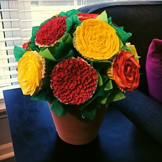 One dozen cupcakes in a variety of floral designs presented in a sturdy base will surely be an impressive centerpiece!