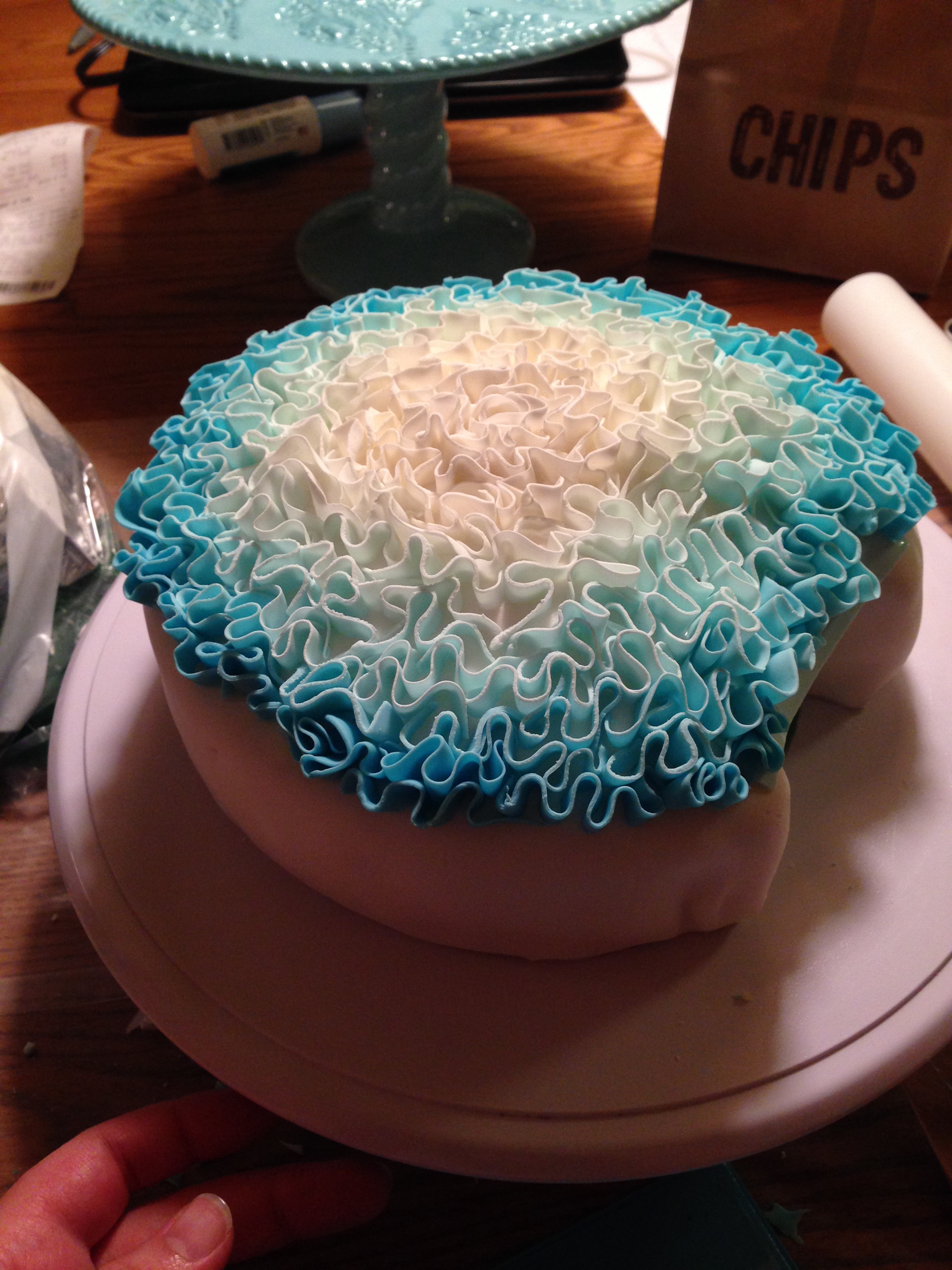 1. Make two separate 16-inch cakes. They are GIGANTIC, fyi.